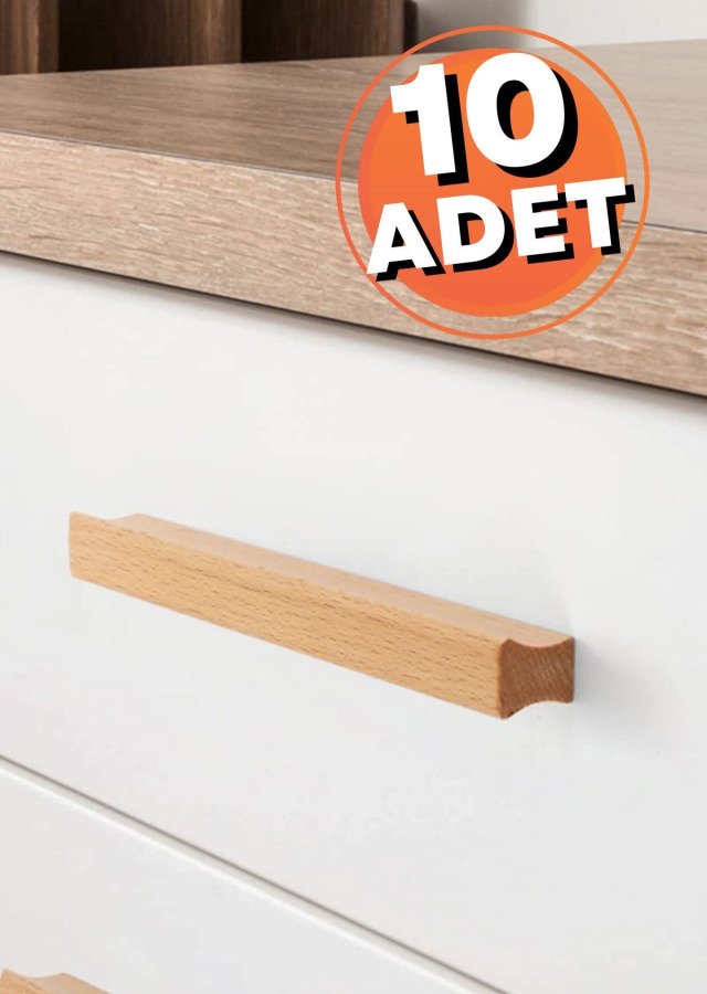 Dolap Kulpu, 10 Adet - 96 Mm (9,6 CM) - Doğal Ahşap Kulp, Cekmece Kulpu, Mutfak Dolap Kulplari - Tek Ebat