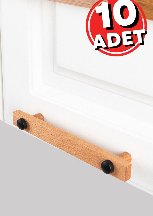 Dolap Kulpu, 10 Adet - 96 Mm (9,6 CM) - Doğal Ahşap Kulp, Cekmece Kulpu, Mutfak Dolap Kulplari - Tek Ebat